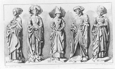 - Afbeelding van vijf beeldjes (z.g. gravenbeeldjes) van brons voorstellende vorstelijke personen, 1846 - 1866
