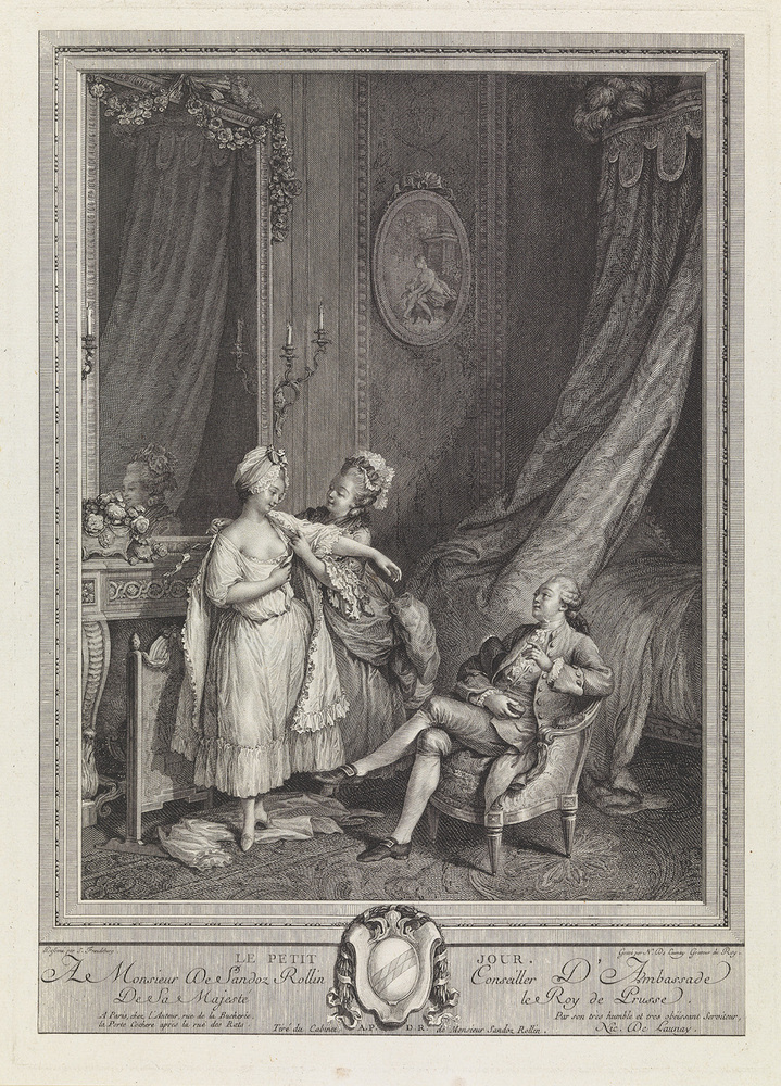 - opschrift r.o. binnen het beeld in de plaat: Gravé par N. de Launay Graveur du Roy