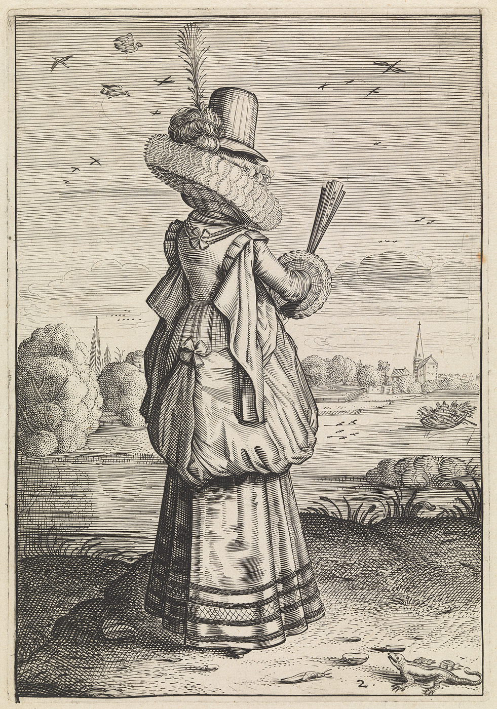 - Adellijke dame in landschap op de rug gezien, een waaier in de rechterhand houdend, 1618 - 1652