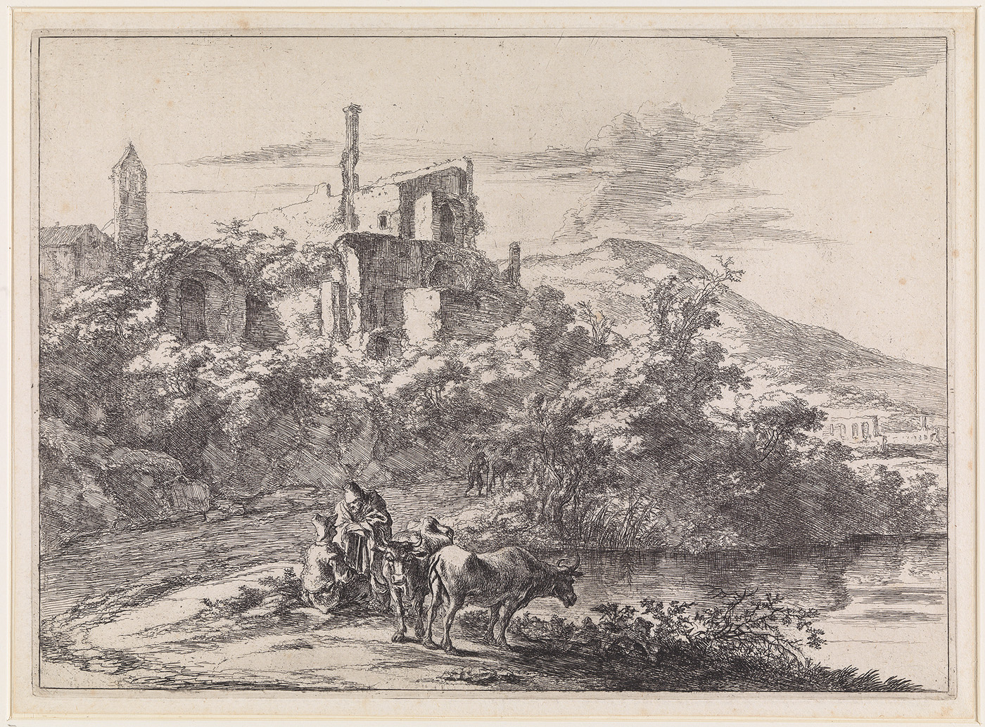 - Twee koeien bij het water bij Tivoli, 1644 - 1652