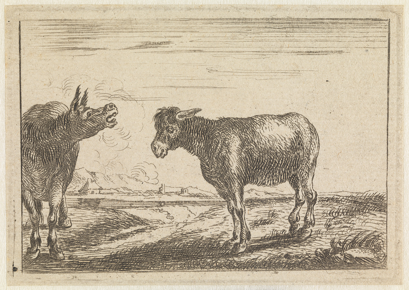 - Landschap met twee ezels (prent uit de serie: alcune animali), 1654