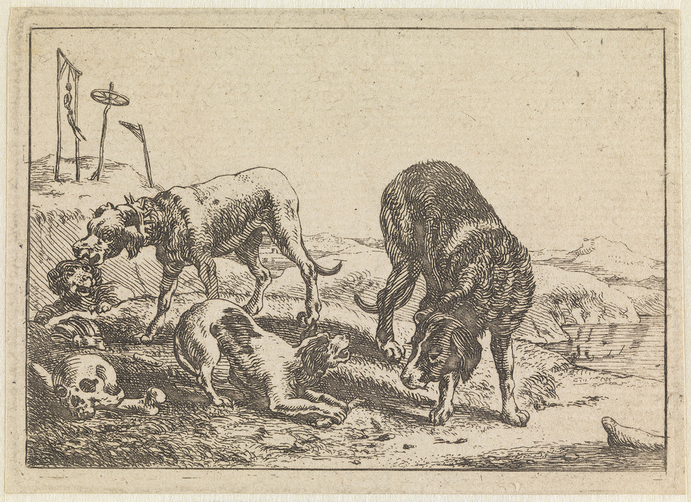 - Landschap met honden (prent uit de serie: alcune enimali), 1654