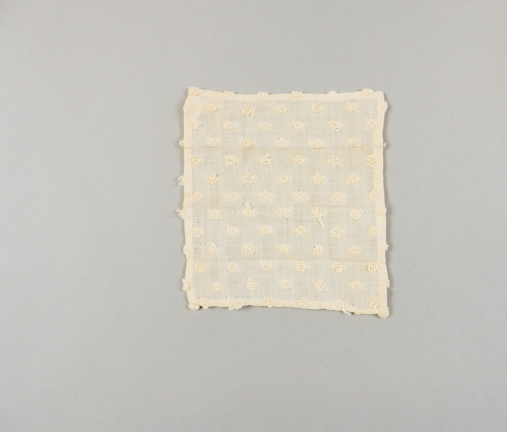 Genopt geborduurd, met de hand omgezoomd lapje van katoen.- Trefwoorden
