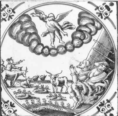 medaillontegel met ossekoppen op de 4 hoeken- Trefwoorden