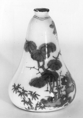 Paar peervormige flessen, beschilderd met een Chinees decor van rustende figuren in een rostachtig lanfschap.- Trefwoorden