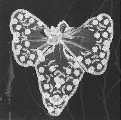 Witte jabot van tule, met naaldkant geappliceerd op tule.- Trefwoorden