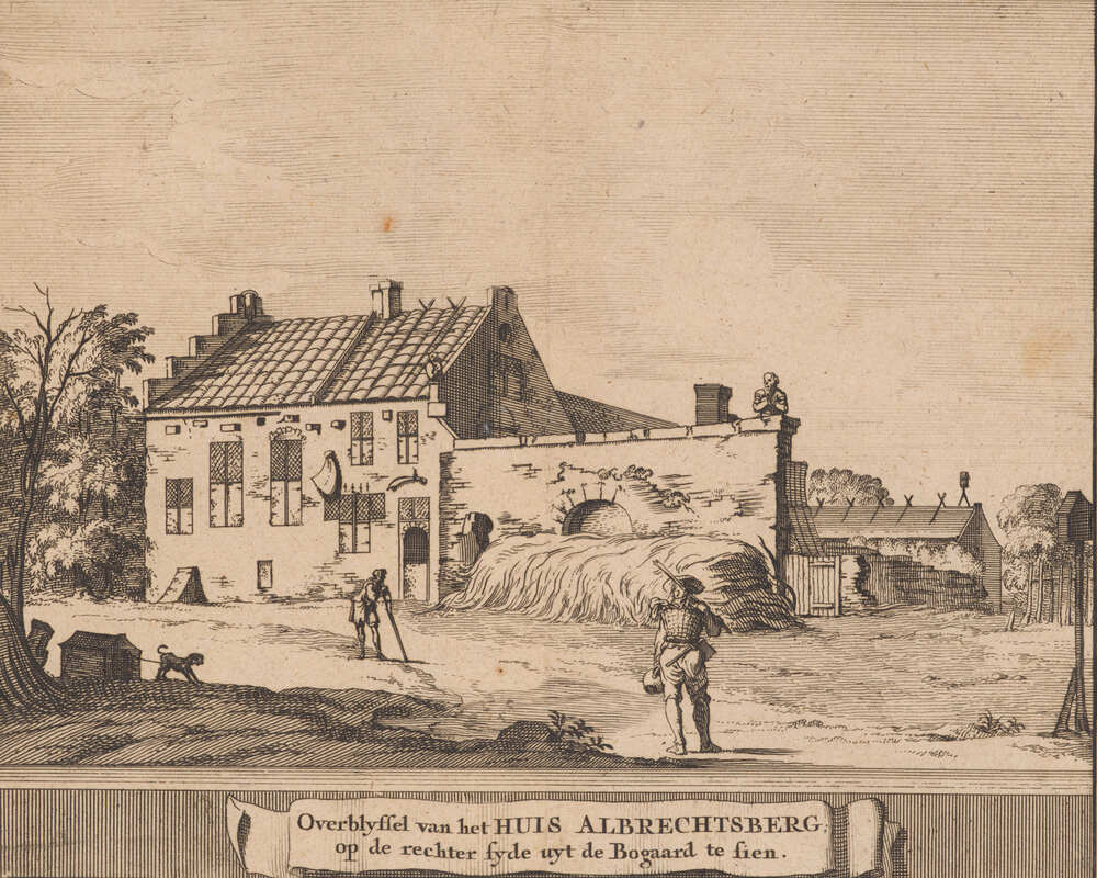 - Overblyfsel van het huis Albrechtsberg; op de rechter syde uyt de bogaard te sien (naar Roghman, R.)