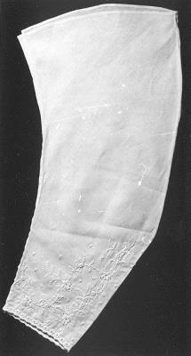 Paat witte katoenen mouwen met handgebroduurde bloemen, met elleboog vorm.- Trefwoorden