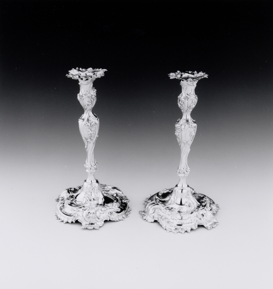 Natuurmotieven vormden een belangrijke inspiratiebron in de bewegelijke, asymmetrische rococo stijl. In de verschillende onderdelen van de kandelaars zijn schuimmotieven en voluten toegepast, evenals bloem- en bladertakjes. ( Bert Vreeken)