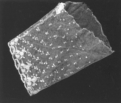 Fragment van een cremekleurige mouw van machinaal geborduurde tule- Trefwoorden