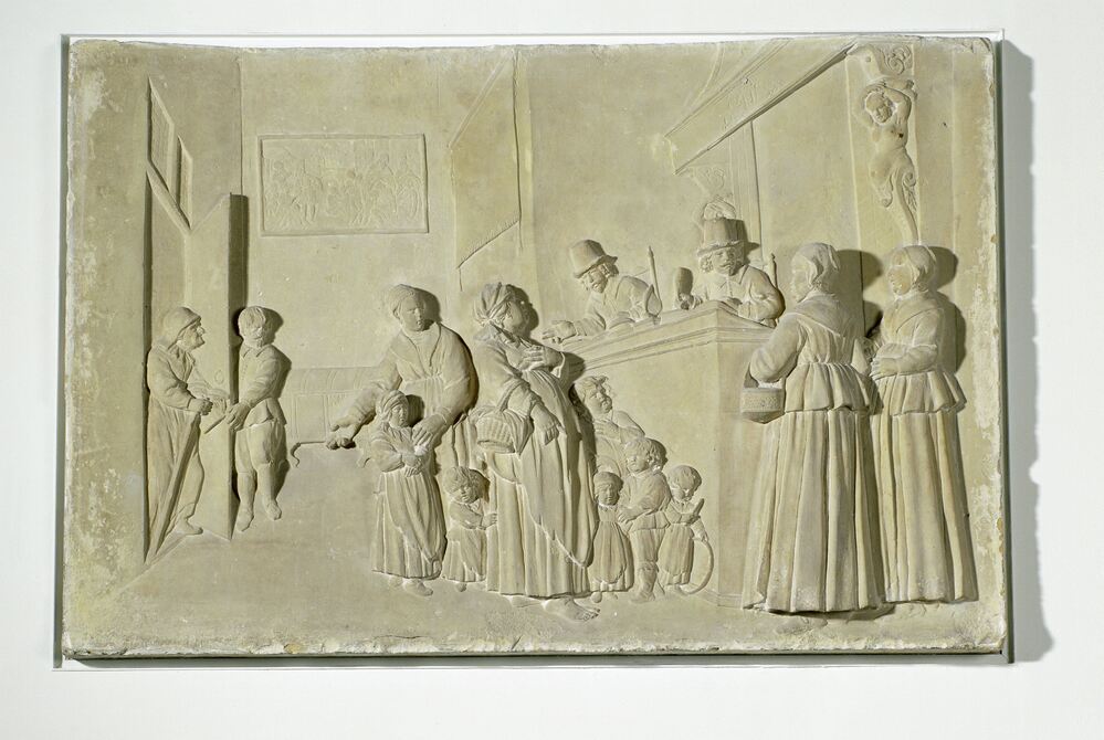 Uit de gevel van het zogenaamde 'tuinhuis', een laag gebouwtje naast het hoofdgebouw van het Nieuwezijds Huiszittenhuis, gebouwd in 1649. Dit reliëf bevond zich boven de linkerdeur van het tuinhuis. Het hoofdgebouw werd in 1873 afgebroken, het tuinhuis bleef gespaard. ( Onno Boers)