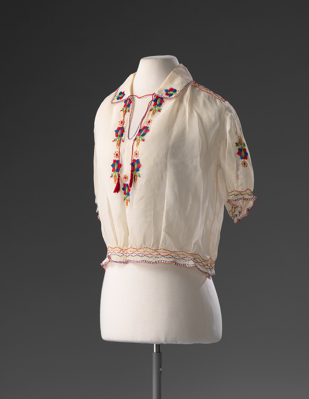 Hongaarse blouse van geborduurde, witte voile.- Trefwoorden