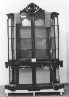 - eikenhout, naaldhout, mahoniehout, citroen/satijnhout, glas, spiegelglas, ijzer en messing