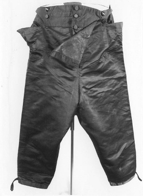 Na de Franse Revolutie (1789) was het niet meer gebruikelijk om via rijk versierde kleding te laten zien tot welke stand je behoorde. Als gevolg daarvan werd het mannenpak soberder van kleur. Versieringen beperkten zich tot de randen van de jas en kraag. Alleen de vesten bleven uitbundig versierd. Dit pak is een voorbeeld van galakleding die aan het hof werd gedragen. De lange jas is volgens de mode aan de voorpanden schuin weggesneden en heeft een hoog opstaande boord. De mouwen zijn strak met brede manchetten. ( Annemarie den Dekker)