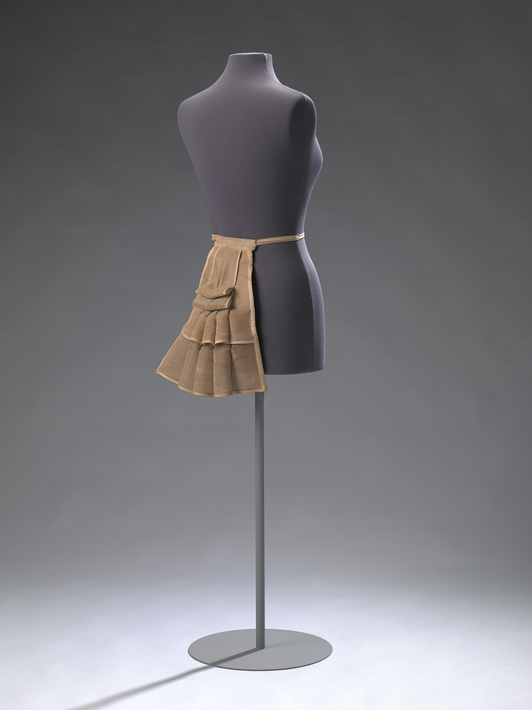 Vanaf 1875 nam het volume van de tournures drastisch af. Het derde en platte model dateert uit 1876 of iets later. De platte vorm geeft een subtiele opvulling aan de rokken. Ook dit model is vervaardig uit paardenhaar en aan de binnenzijde naar wens op te spannen. De kleine, korte tournuremodellen waren geschikt voor onder de kleding voor in huis en op straat. Maar zij gaven onvoldoende ondersteuning aan de volumineuze bal- en avondtoiletten met lange slepen. ( Judith van Amelsvoort)