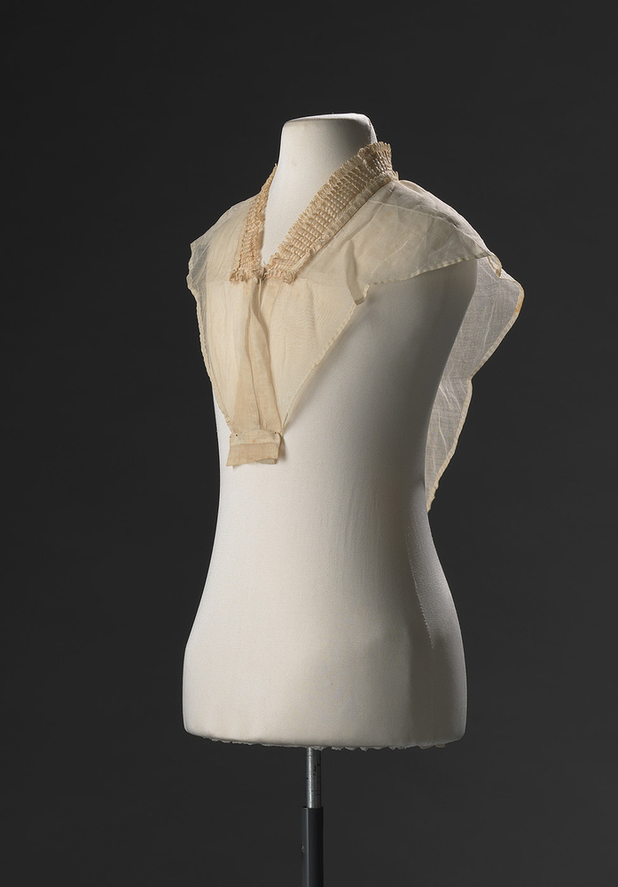 De vierkante, hoge hals past in de mode van 1880-1890. Na 1890 begint de chemisette uit de mode te raken en wordt rond 1900 vervangen door de guimpe.