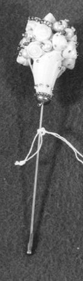 Met de aanschaf van een hoed werden meestal een of meerdere hoedenpennen gekocht. Hoedenpennen waren er in allerlei soorten en kleuren en zorgden ervoor dat een hoed goed en stevig op het hoofd bleef zitten. De lange puntige stalen pennen werden door de bol van de hoed in het er zich onder bevindende haar gestoken. Pennen zonder beschermdopjes waren scherp en konden voor verwondingen zorgen bij omstanders. Het gemeentebestuur van Amsterdam nam daarom in 1913 in een politieverordening op dat “het verboden is in het openbaar van hoedepennen gebruik te maken, waarvan de uitstekende punten niet zijn voorzien van doelmatige beschermers”. Zelfs in de trams waren destijds bordjes aangebracht waarop deze verordening werd vermeld. In de hoedenwinkel waren de pennen met beschermdopjes op een kussen gestoken dat zich meestal op de toonbank bevond zodat men de hele collectie goed kon overzien. ( Annemarie den Dekker)
