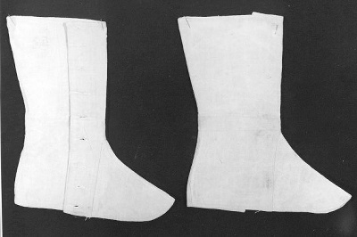 Naturel linnen slobkousen, oorspronkelijk twee rijen knoopjes voor het verstellen. Zwart stempel opdruk randschrift: Commission de Re... 84e RECy d'... 15. In het midden: 17 11 1902 Mogelijk onderdeel van studentenkostuum, uniform of maskerade kostuum.- Trefwoorden