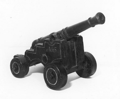 - lengte totaal: 59 cm; hoogte totaal: 39 cm; breedte totaal: 30 cm; lengte kanon: 59 cm; diameter kanon: 9.5 cm; lengte affuit: 42 cm; hoogte affuit: 33 cm; diameter affuit: 14 cm;