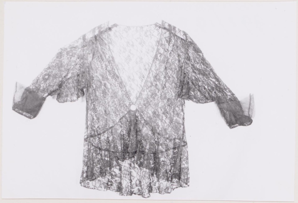 Het avondjasje is gemaakt van zwart kant met zwarte tulen manchetjes.- Trefwoorden
