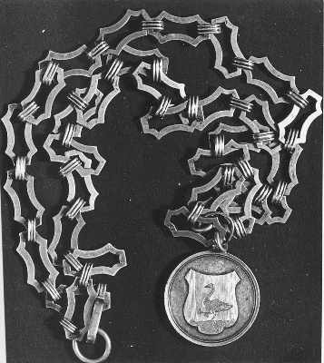 Ronde penning aan keten, bestaande uit van platte gepunte schakels, alternerend met kleine gegolfde schakels. Voorzijde penning met zwaan in schild, met één poot een bundel met zes pijlen houdend, keerzijde penning met het gekroonde landswapen van Nederland, gehouden door twee leeuwen, waaronder banderol met: JE MAINTIENDRAI/.