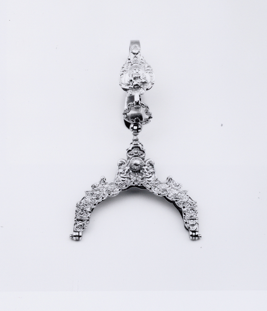 De tasbeugel toont de voor François Quien kenmerkende rijke versiering met bloem- en bladranken, voluten en menselijke figuren. Deze bedekken nagenoeg het complete beschikbare oppervlak van de voorzijde van het object. Het Rijksmuseum te Amsterdam bezit een aan Quien toegeschreven rijg- of haarnaald uit 1739 met dezelfde stijlkenmerken (De Lorm 2001, p. 366 nr. 256).