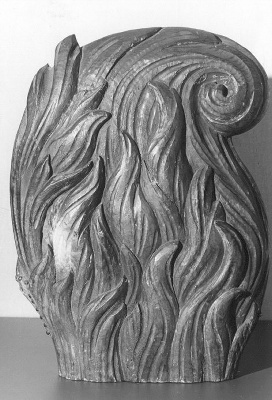 gevelversiering in de vorm van een vlam naar rechts, afkomstig van het in 1868 afgebroken huis Koestraat 5. Dit pand was van 1681 tot 1712 woonhuis en werkplaats van Jan van der Heyden (1637-1712), schilder, graveur en uitvinder. Hoe en waar de vlam - evenals pendant KA 16157 - de gevel heeft gesierd is niet bekend. Vermoedelijk is de vlam met lood beslagen en beschilderd geweest.