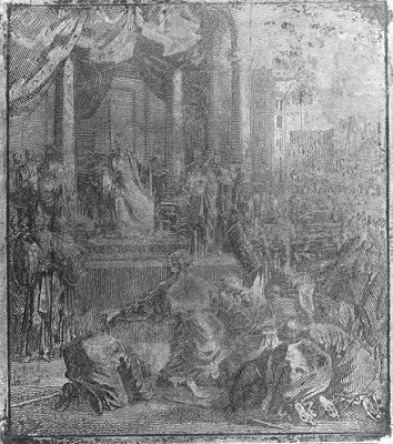 - Etsplaat - De broers van Jozef geknield voor de onderkoning van Egypte, 1706