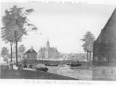 - "Vue de la porte de leyden à amsterdam" (opticaprent), 1700 - 1799