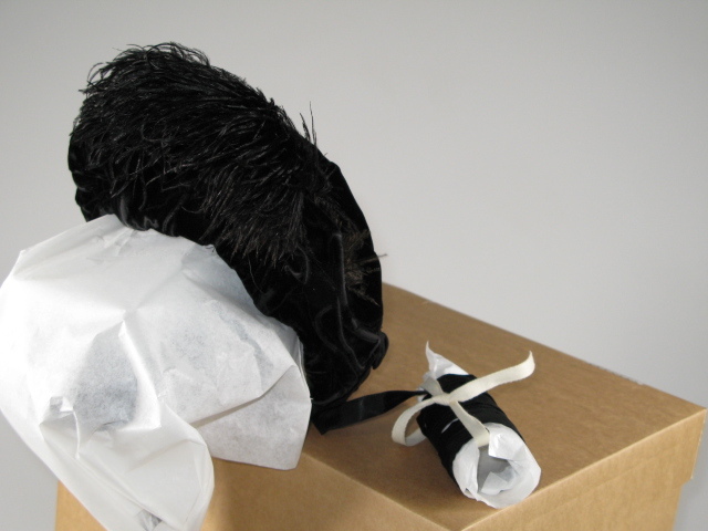dameshoed kapothoed Fluweel struisveer voeringgaas zijde en gitten Voering satinet. Wat hoger en dan later.