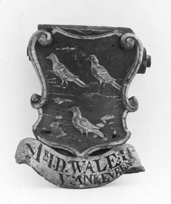 - Wapen van Mr. Joan de Wale (gest. 1691), heer van Ankeveen, regent Aalmoezeniersweeshuis (1663 (1666)-1691)