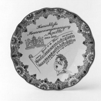 opschrift plat, boven: Koninklijke/Mannenzangvereniging/"Apollo"/1853-1953