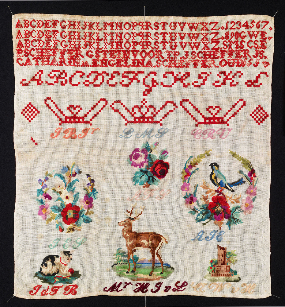opschrift 4e regel: P.SCHEFFER G STEINVOORT P.J. SCHEFFER JS.: Pieter Scheffer, vader van borduurster