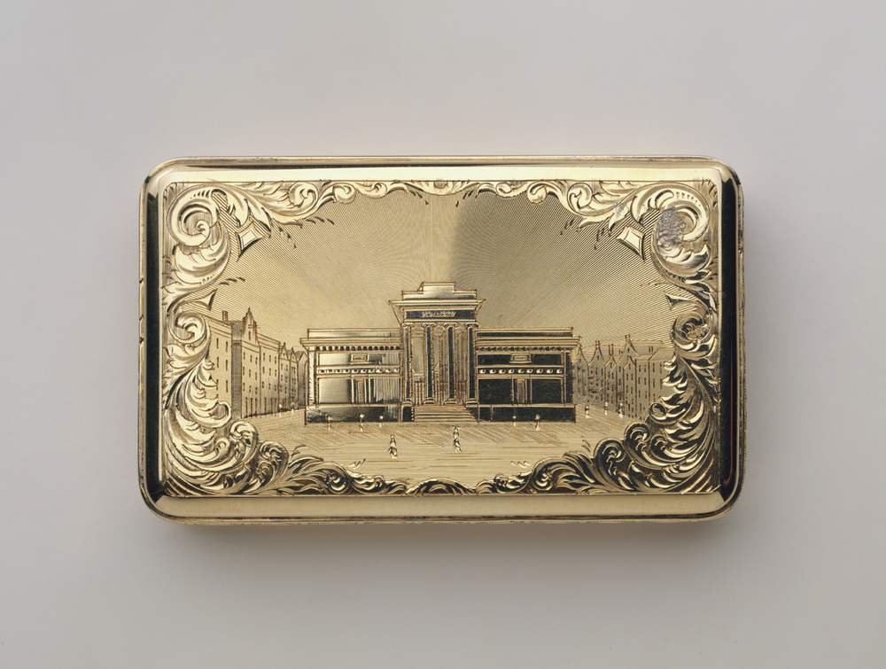 Deze snuifdoos werd op 21 december 1845 door Adriaan van der Hoop aangeboden aan J.D. Zocher, de architect van de zojuist geopende Beurs. Een paar jaar daarvoor had an der Hoop als raadslid weten door te drijven dat Zocher de opdracht kreeg. Dat was merkwaardig, omdat de architect eerder als jurylid betrokken was bij de prijsvraag die een nieuw ontwerp had moeten opleveren.