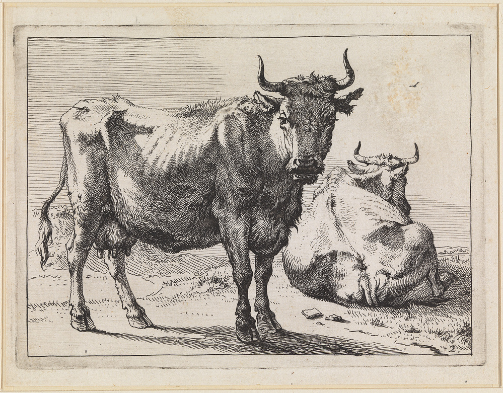 - Een staande en een liggende koe, 1650