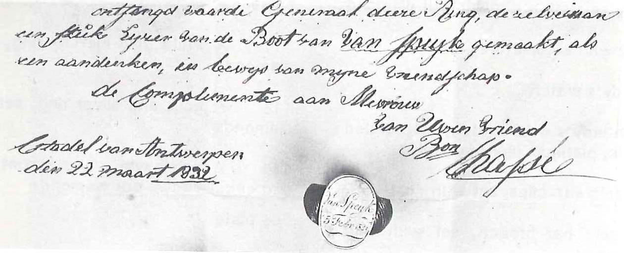 - Briefje gezegeld met rode lak met wapen van Chassé, 1831 - 1832