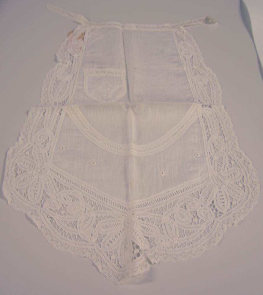 Witte schort van katoen met een rand van bandkant, voor een dienstmeisje, voor de nette momenten.
