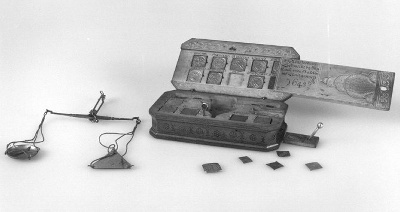 opschrift op 30 van de 33 muntgewichten: hamer