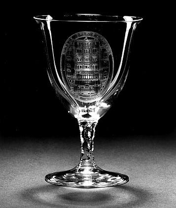 Het glas is vervaardigd ter gelegenheid van het 25-jarig jubileum van de Bodega Oporto, van 1902 tot 1963 gevestigd aan het Damrak 92. ( Bert Vreeken)