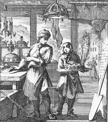 Prent nr. 44 op tekstpagina uit "Het menselyk bedryf" door Jan Luyken- Trefwoorden
