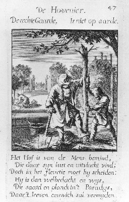 Prent nr. 47 op tekstpagina uit "Het menselyk bedryf" door Jan Luyken- Trefwoorden