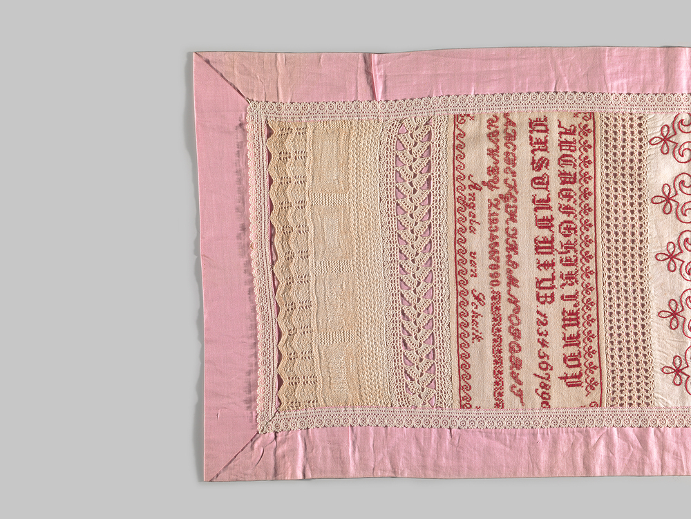 - opschrift op bijbehorend roze kaartje: Collection Souvrages à l'aiguille faite par Angela van Schaick