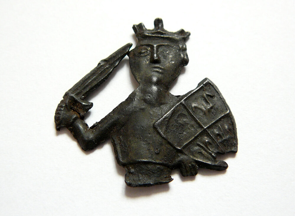- Fragment van een pelgrimsteken met ridder, 1400 - 1499