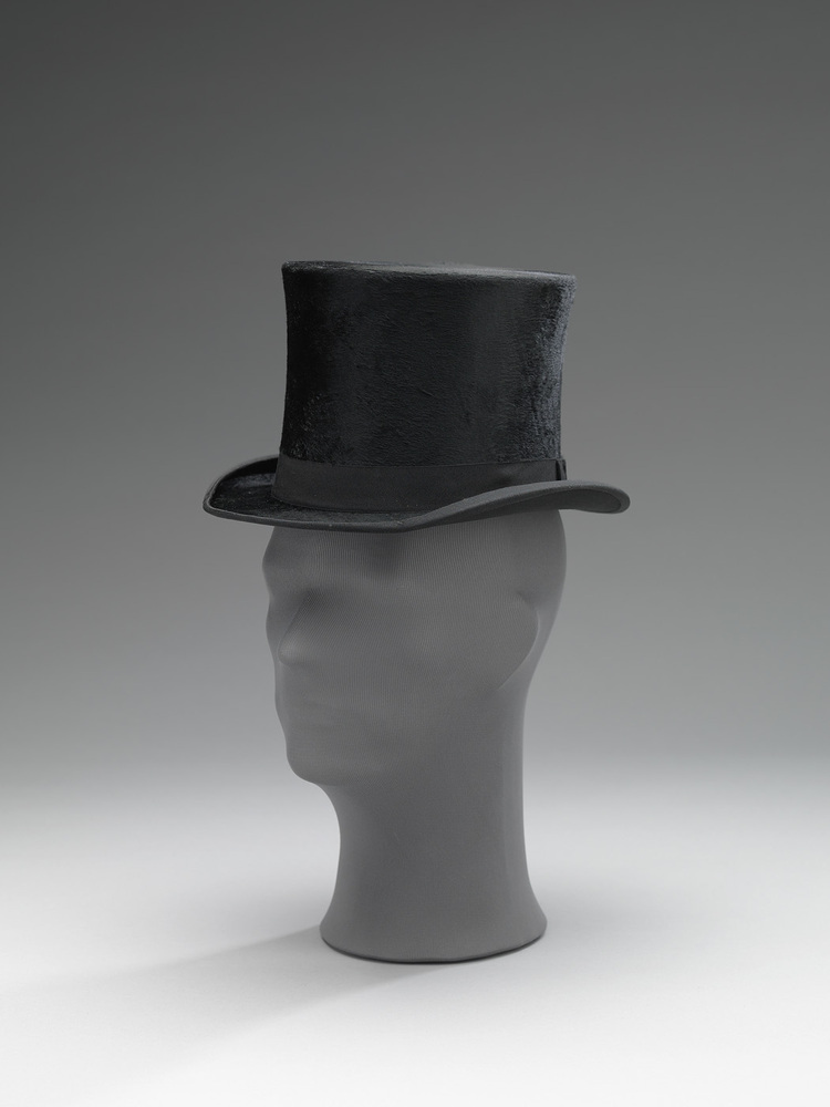 De zwarte hoge hoed is de netste van alle hoeden. In 1797 droeg de Engelse hoedenmaker John Hethington hem voor het eerst. Voorbijgangers reageerden ontzet op deze nieuwe creatie in de vorm van een kachelpijp. Hethington werd veroordeeld tot een geldboete. Maar de hoge hoed werd populair. In de 19de eeuw was het de meest geliefde hoed ooit. Buitenshuis droeg een heer een hoge hoed altijd, in combinatie met een wandelstok: dit laatste als steun of als wapen, maar vooral als accessoire. Knoppen van wandelstokken werden gedecoreerd met kostbare materialen en waren een teken van voornaamheid en autoriteit. ( Annemarie den Dekker)