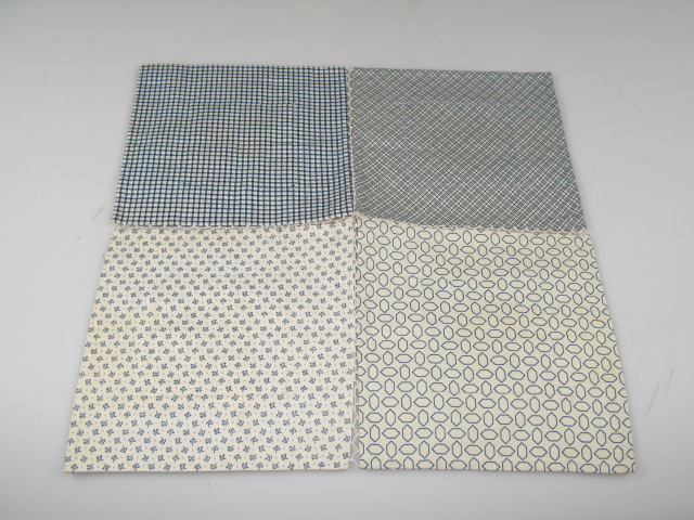 met gedessineerde katoen met ingezette stukken van hetzelfde materiaal. vier rechthoeken dmv vissersgaren met ruimte aan elkaar gezet waardoor een grote lap ontstaat.- Trefwoorden