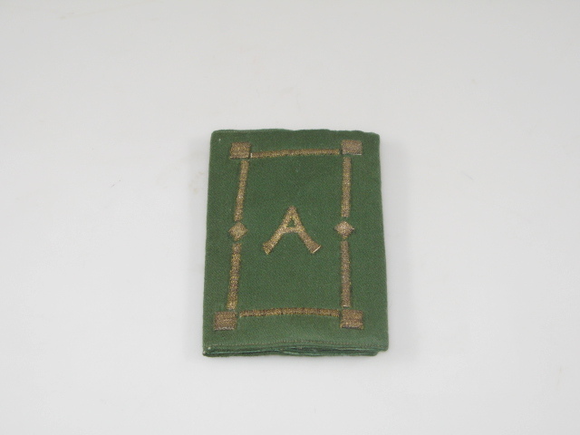 van groen laken; ornament van goudborduursel; voering van groen glanskatoen- Trefwoorden
