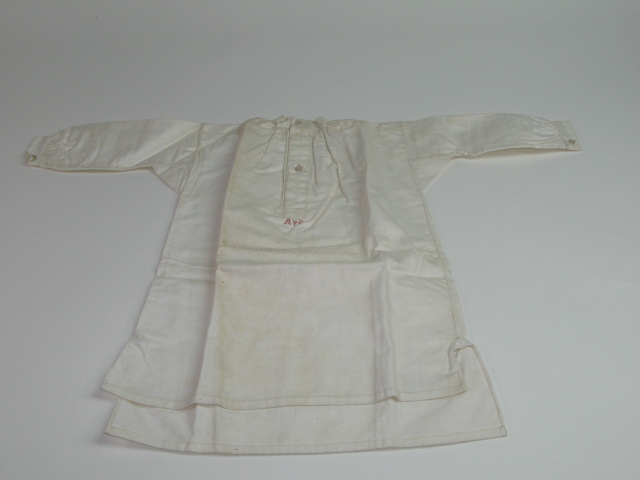 rond boordje, lange mouwen, split middenvoor.