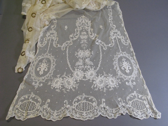 Getamboereerd katoenen vitrage met borduursel in bloemmotief. Aan de bovenzijde versterkt met band met daaraan bevestigd 7 metalen ringen. Met aan bovenzijde oprijg voor juiste lengte.- Trefwoorden