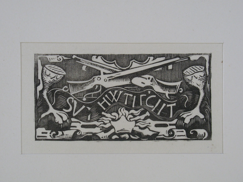 - Houtsnede van de gevelsteen van het Smidsgilde "St. Eloy" hoofdtoren zuidkant, 1933 - 1935