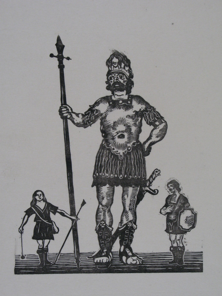- Houtsnede van Goliath, David en een dienstknecht, 1933 - 1935
